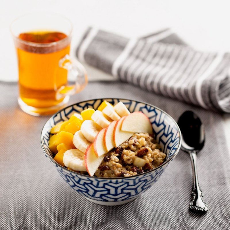 Havermout eten is een top begin van je dag. Het bevat veel eiwitten, vezels en vitaminen. Wij maken deze havermout af met lekker veel fruit, rozijnen, goijbessen, pruimen, abrikozen en pitten. Maak het af met wat kaneel en je kunt er flink tegenaan.
