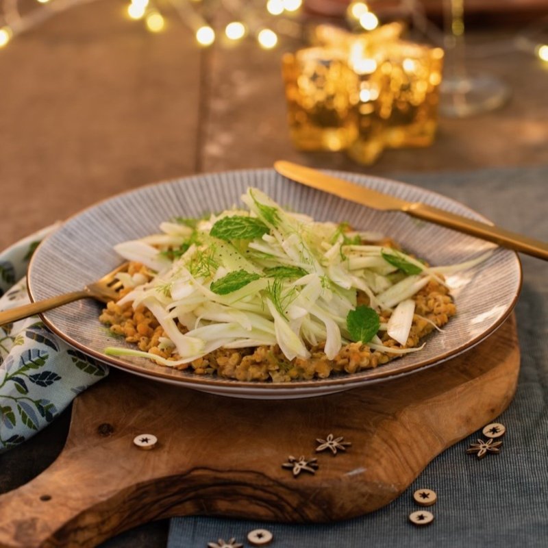 Bekijk meerEen heerlijk licht wintersoepje dat perfect is als lunch met wat brood of als voorgerecht. Het bevat knolselderij met sinaasappelsap, ui en venkel, afgemaakt met een topping van (vegan) crème fraîche.