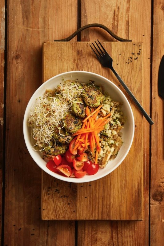 Buddha bowl met edamameburgertjes