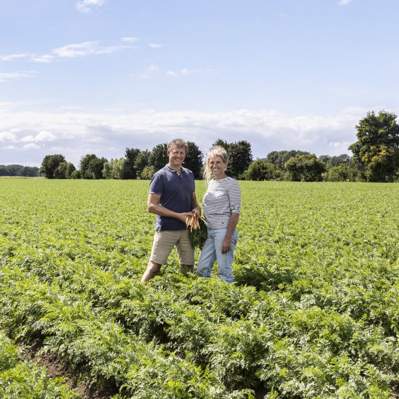 Op hun biodynamisch bedrijf De Zonneboog bij het Larserbos in Flevoland, verbouwen Monique en Martijn Schieman ongeveer 14 verschillende gewassen per jaar. Daarnaast lopen er ook prachtige Limousinkoeien op hun land. Veel van de groenten die het stel verbouwt, belanden vers in de diepvries.