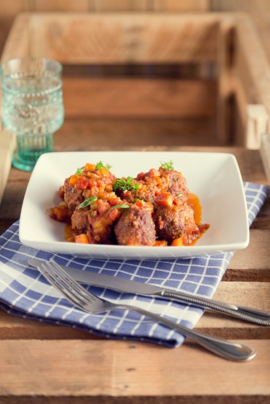 - Schep de gehaktballetjes voorzichtig door de saus en laat nog 10 minuten sudderen.