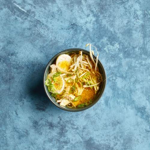Bekijk meerEen heerlijke romige soep met rode currypasta, kokosmelk, tomaten, gembersiroop, bimi, taugé en garnalen. Bereidingstijd: 45 minuten