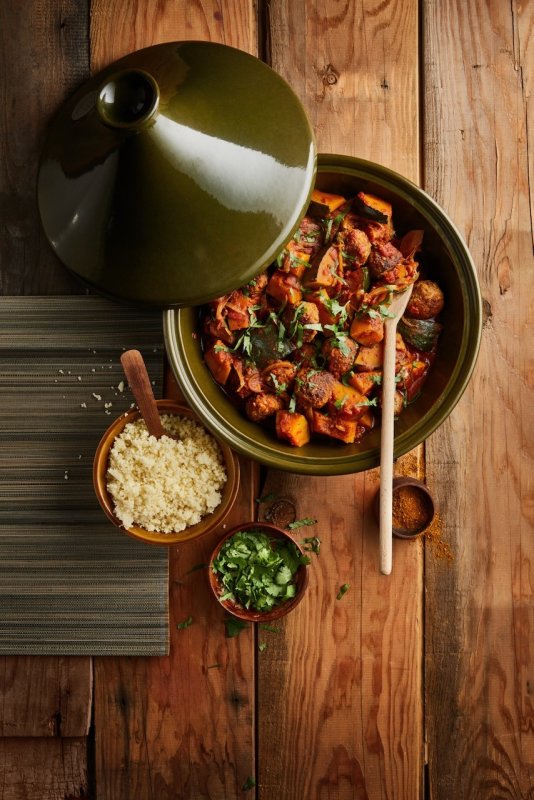 Gestoofde bulgur-lamsballetjes in pompoen-tomatensaus